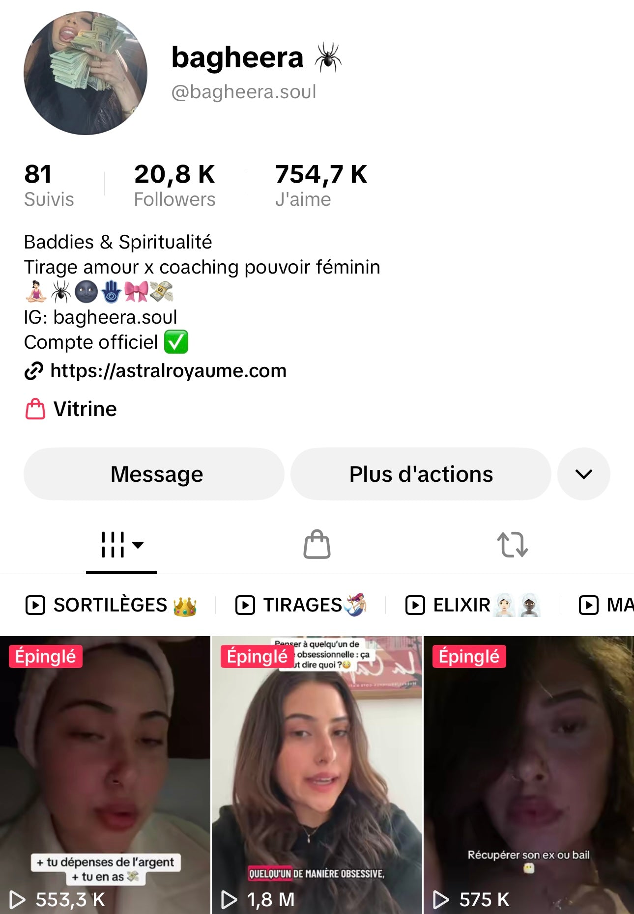 Suis-moi sur TikTok : tirages journaliers, coaching énergie féminine, concepts intuitifs innovants et lives puissants